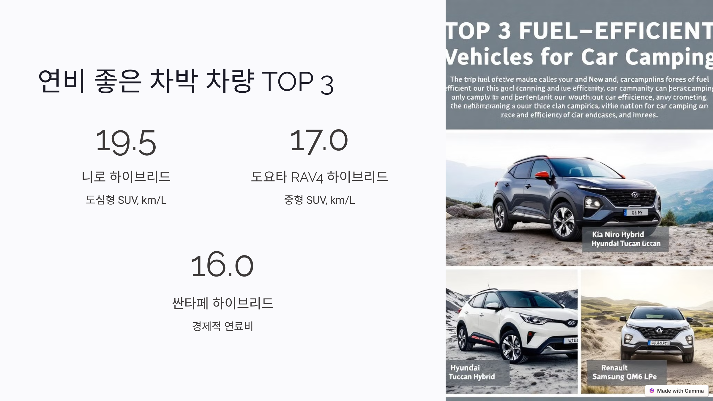 그럼 이제 연비 좋은 차박 차량을 추천해볼게요! ⛽🚗