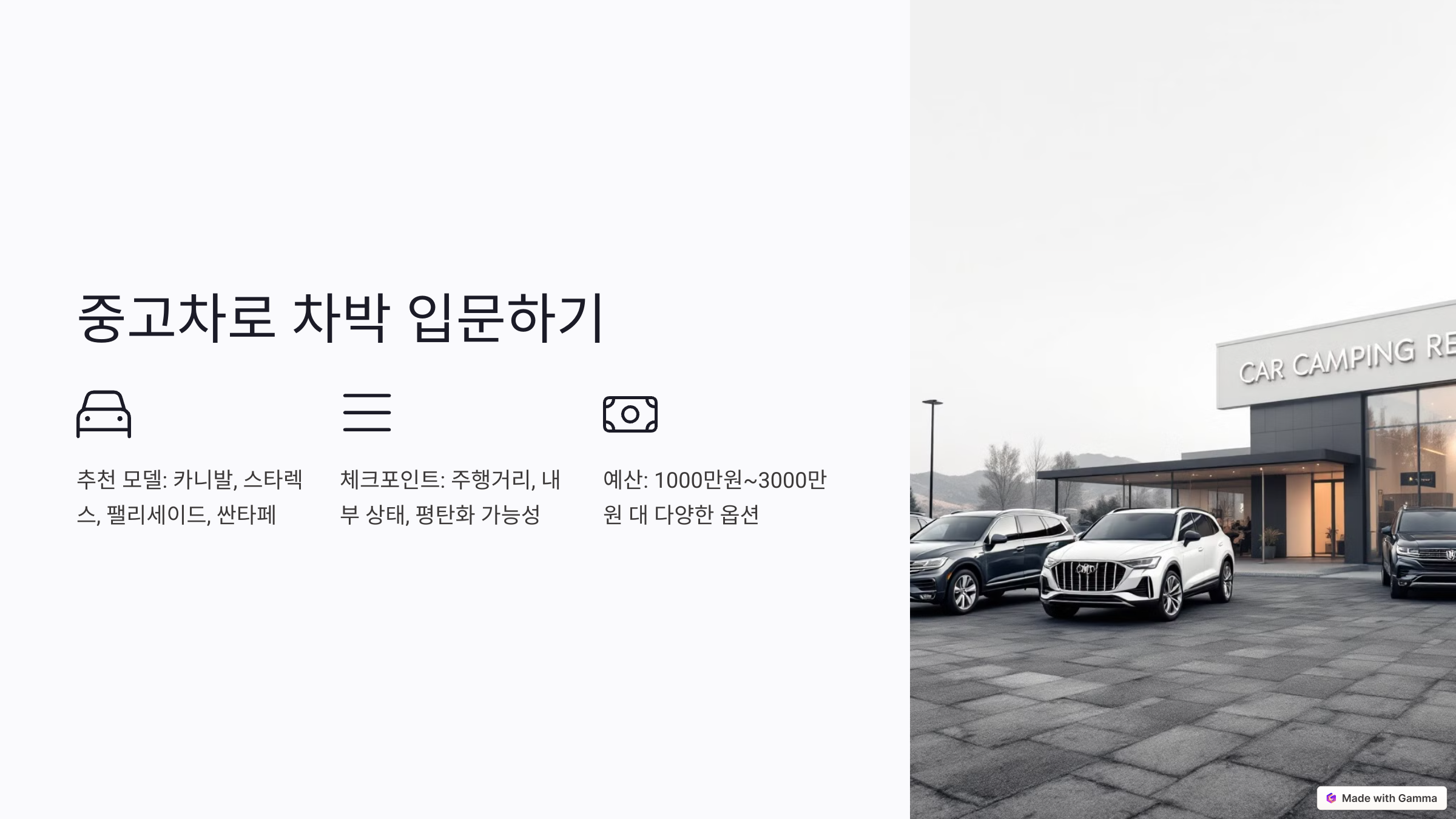중고차로 차박을 시작하는 건 충분히 가능하지만, 꼼꼼한 체크가 필요해요! 👀